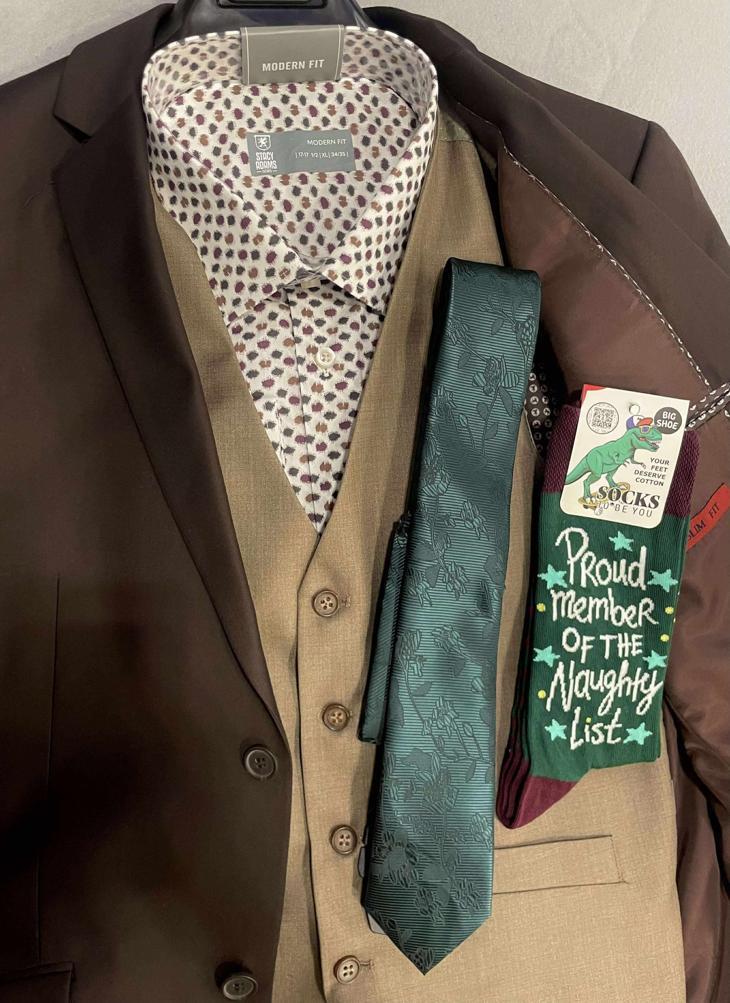 A sharp jacket, hemmed pants, crisp dress shirt, ANY tie, ANY belt or suspenders, ANY pair of standout socks - ALL pressed for ANY occasion.